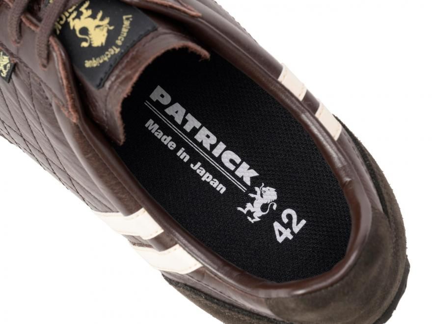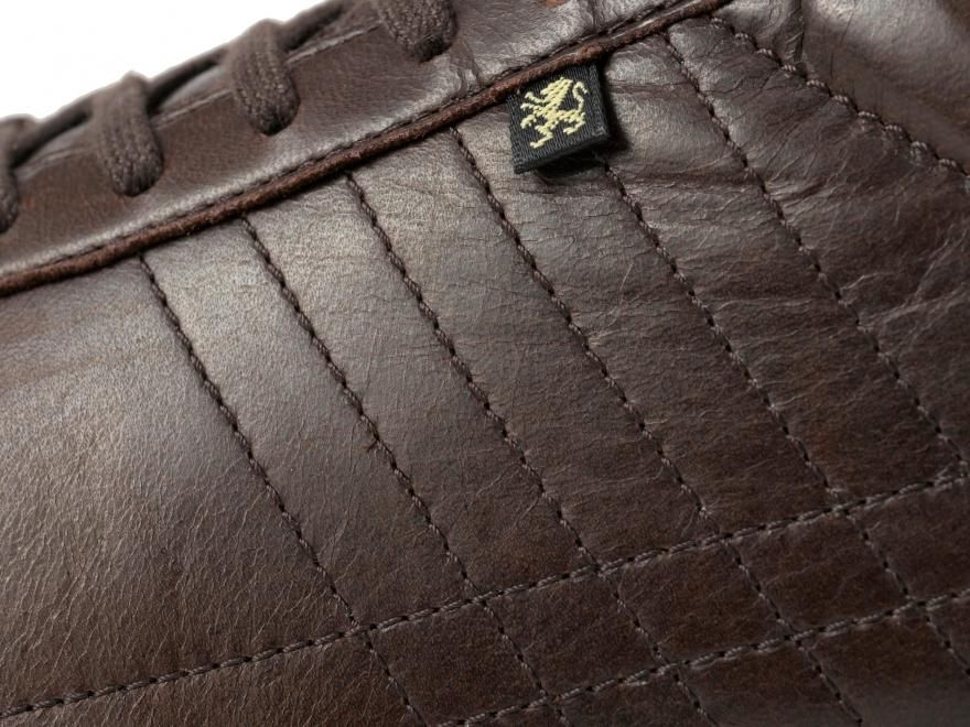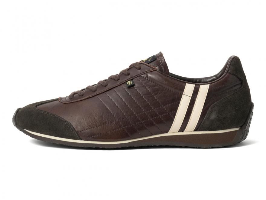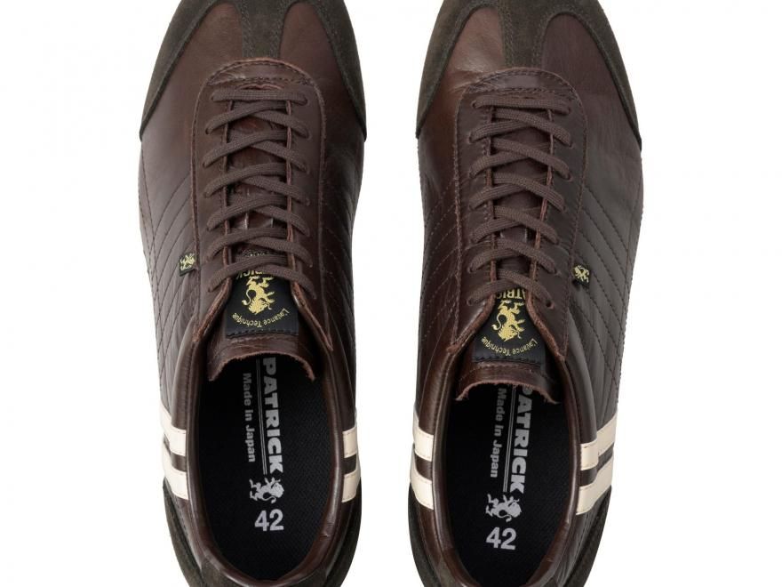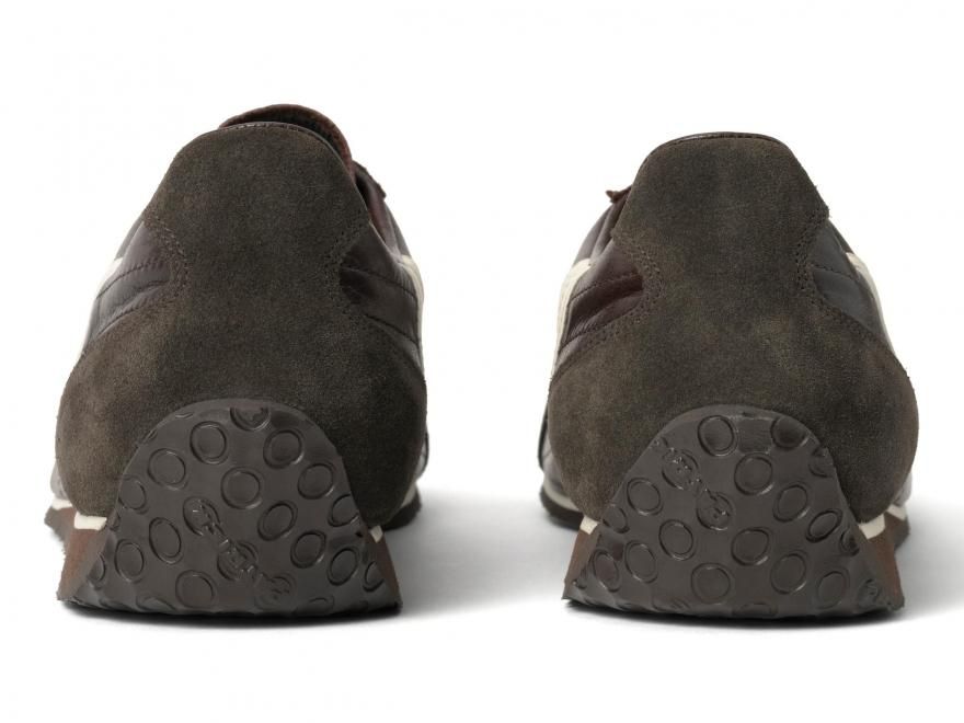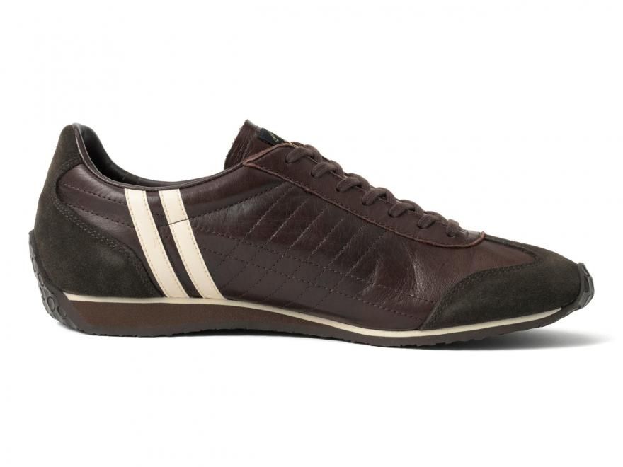 今回のシーズンカラーは、濃厚なチョコブラウン。ホースレザーの上品な光沢と相まって、しっとりとした存在感を放ちます。重たくなりがちな色味も、白い2ラインとソールが抜け感を演出し、都会的な軽さを添えています。