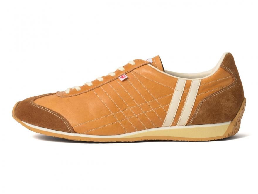数量限定カラー〈ホース・キャメル〉は、革の持つ温かみと深みのある発色が印象的。落ち着いたトーンながら、さりげなく足元を主役にしてくれる大人の一足です。