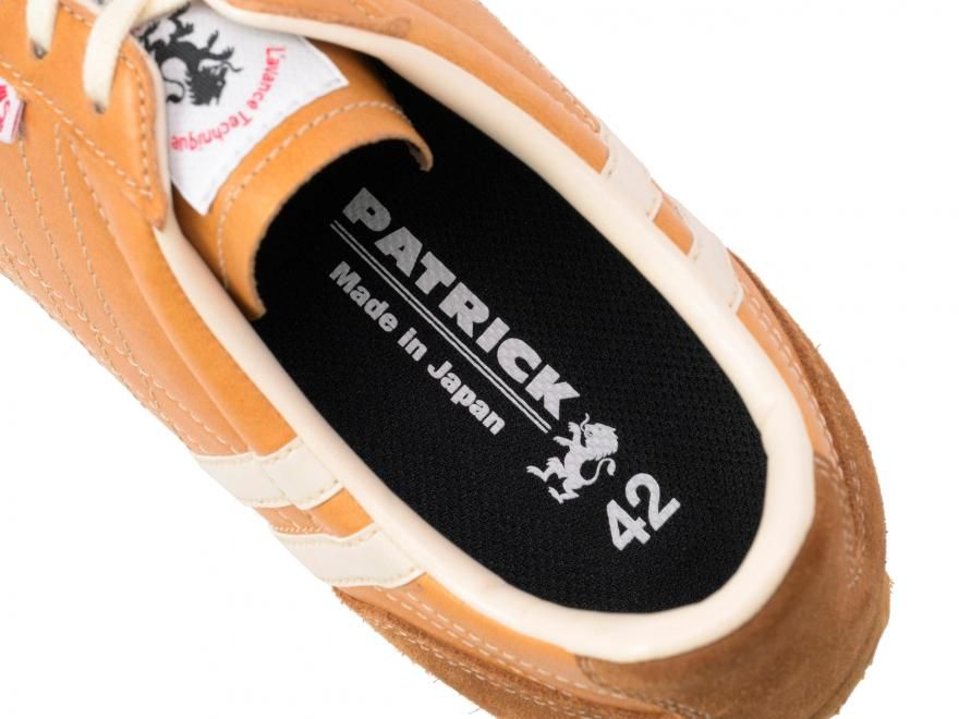 ソールには軽量発泡素材を採用。クッション性と耐久性を両立し、長時間の歩行でも軽快な足取りをキープ。見た目のスマートさとは裏腹に、驚くほどの快適さを感じられます。